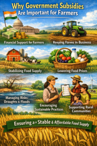Farming is highly dependent on factors like rainfall, soil quality, market prices, and climate conditions. Government subsidies help farmers by: