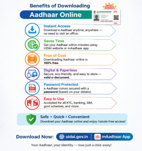 Downloading Aadhaar online offers several advantages: