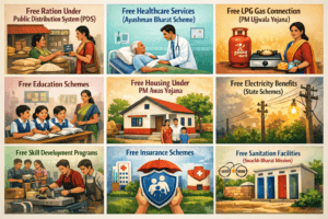 India, as a welfare-oriented nation, offers a wide range of free benefits and schemes to support its citizens—especially those from economically weaker sections. These benefits aim to improve living standards, promote equality, and ensure access to basic necessities such as food, education, healthcare, and housing.