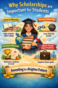 Scholarships play a significant role in promoting education and reducing the financial burden on families. Many talented students are forced to discontinue their education due to lack of funds. Scholarships help overcome this problem by providing financial support.